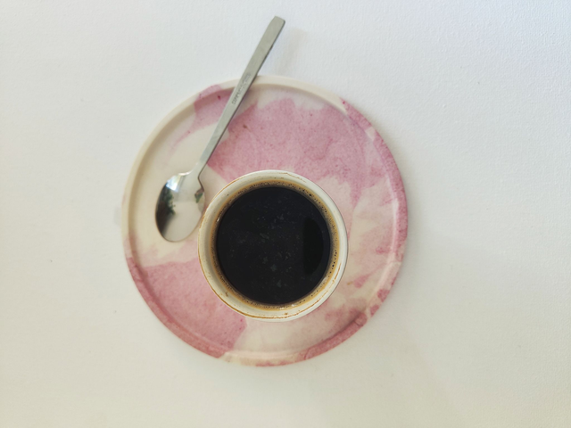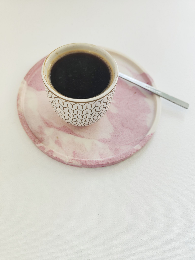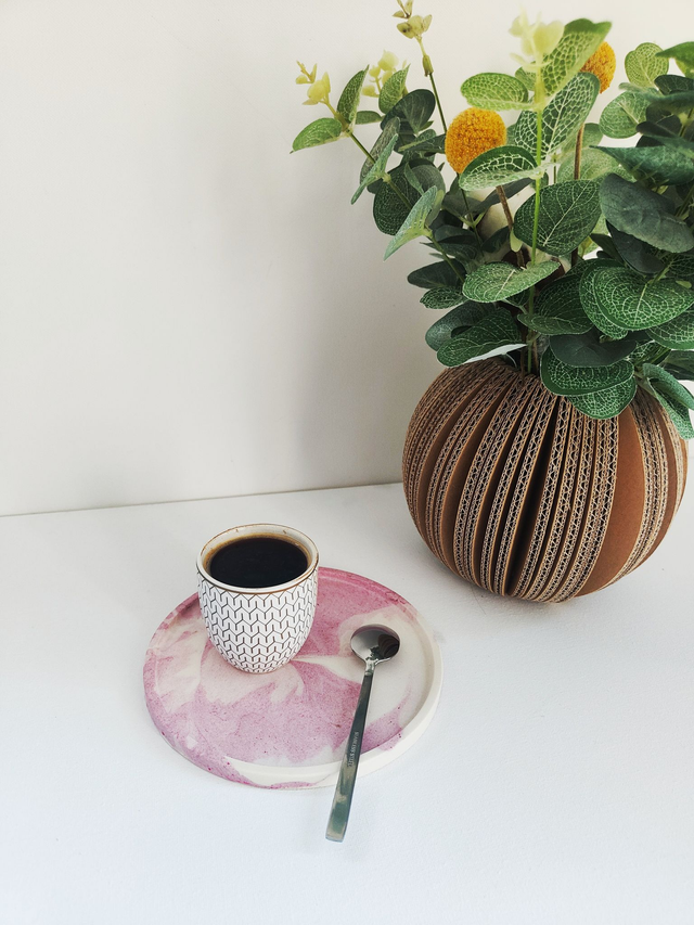 ♻️ Fabriqué en jesmonite, une matière solide et durable, il met en valeur les nuances douces de rose et de blanc créent un contraste subtil qui capture la lumière de manière éblouissante.