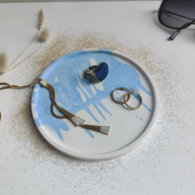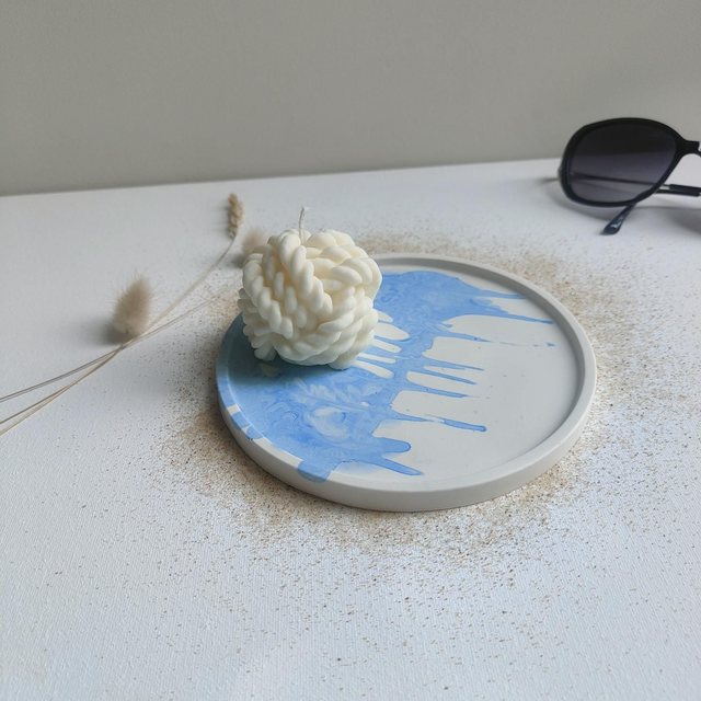 Plateau en jesmonite aux couleurs des thèmes marins de 16 cm de diamètre.